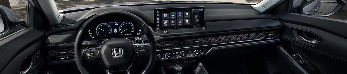 The 2024 Honda Accord truly pampers its occupants, sporting an interior that seamlessly merges comfort and convenience. The base trims are equipped with dual-zone automatic climate control for personalized comfort. The more premium trims usher in an undeniable sense of luxury with leather-trimmed seating and a leather-wrapped steering wheel and shift knob. The top-tier Touring goes a step further, delivering ventilated front seats for those hot summer days and wireless phone charging for cord-free convenience. Regardless of trim choice, passengers will enjoy Honda's cutting-edge infotainment system, serving as a hub for both entertainment and essential vehicle information.