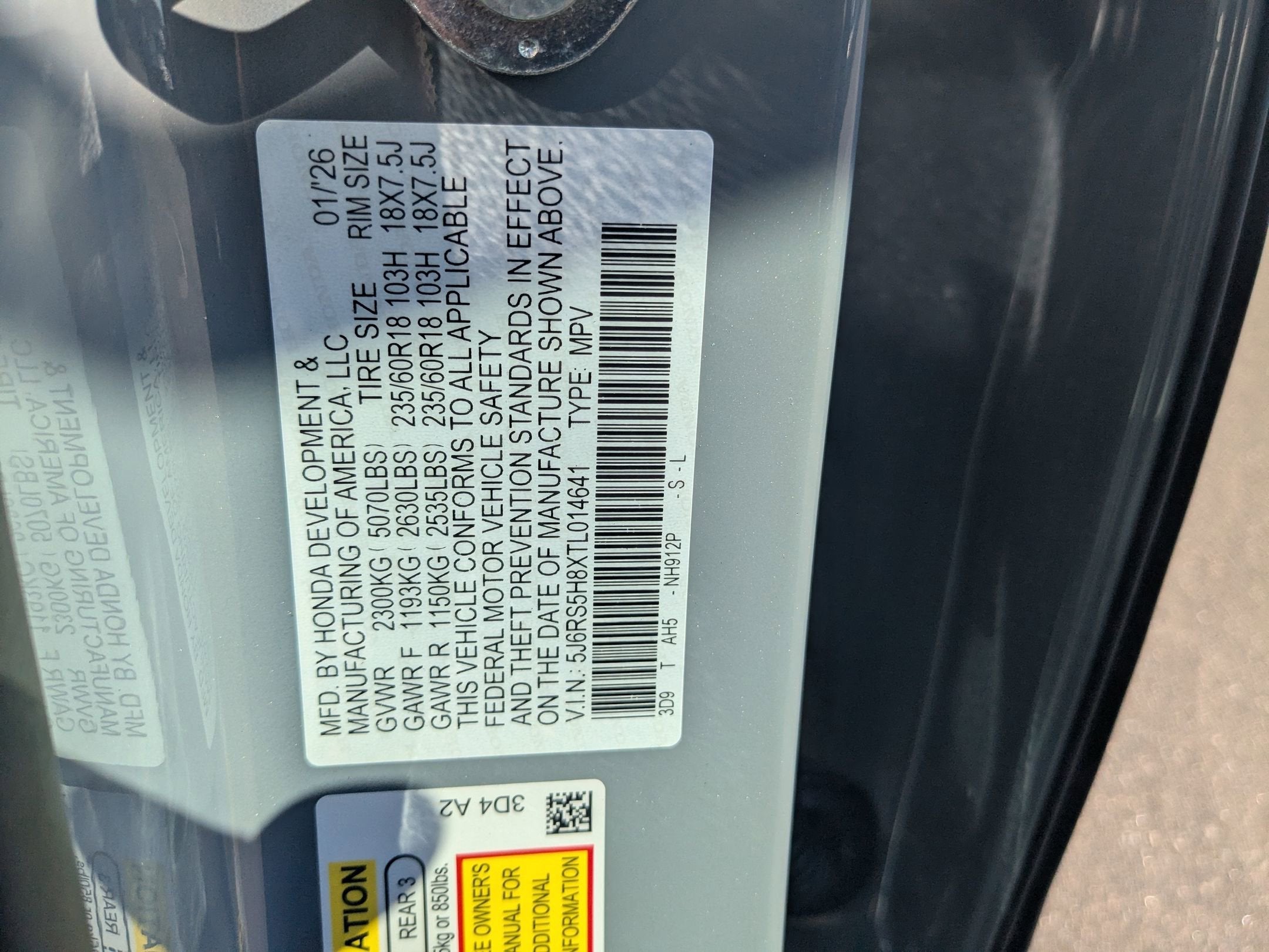 - Tires: 235/60R18 103H All-Season