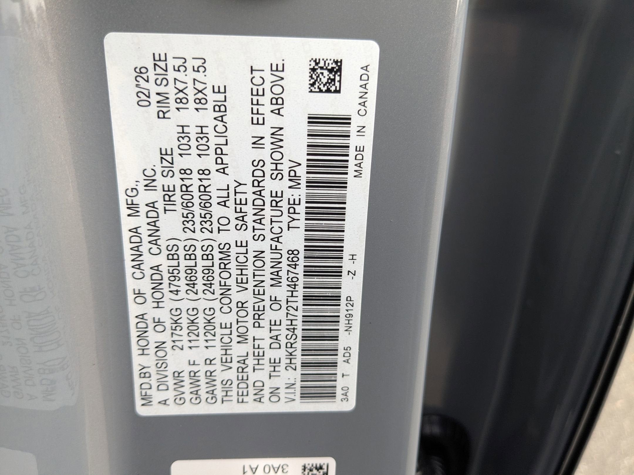 - Tires: 235/60R18 103H All-Season