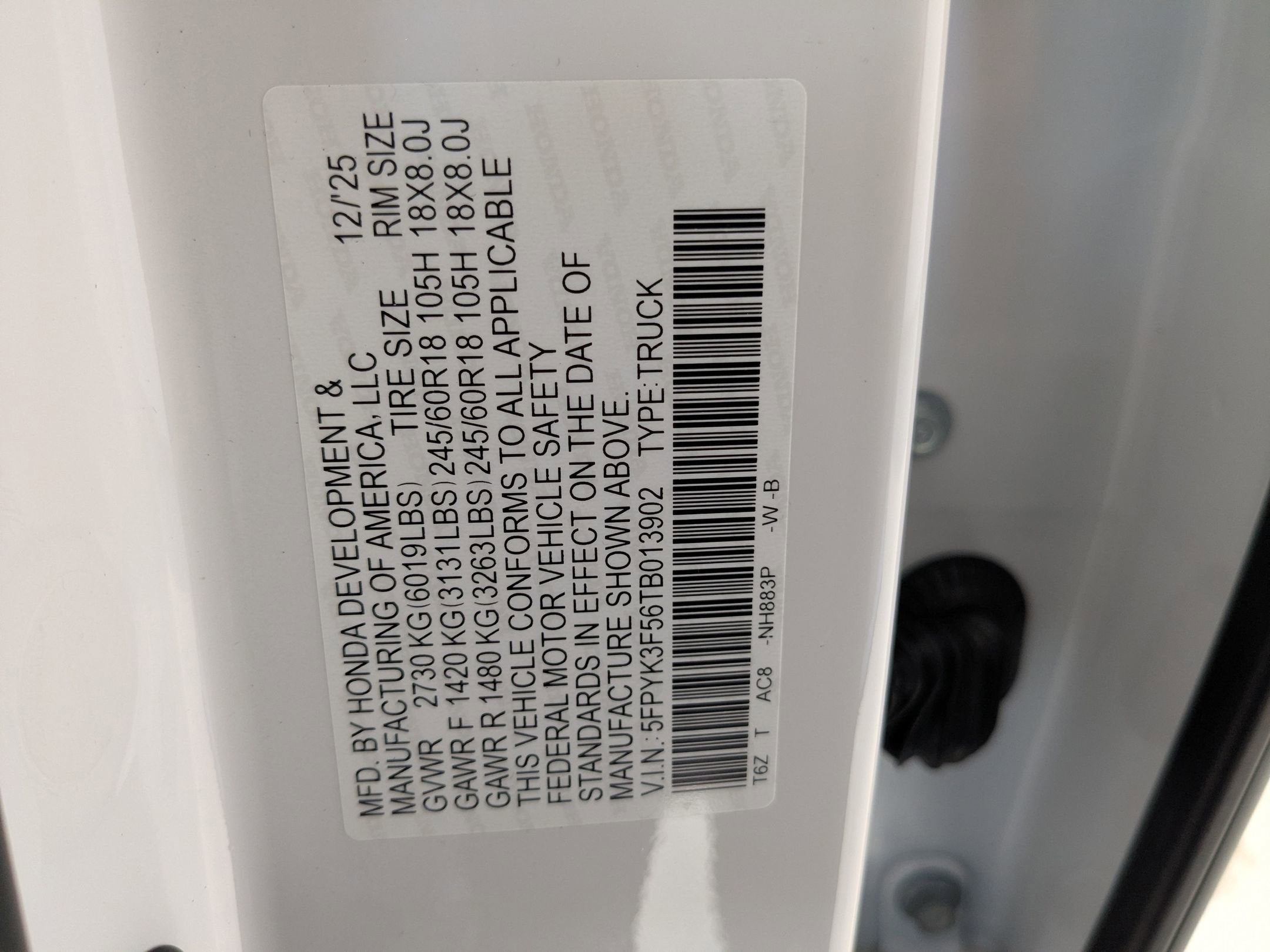 - Vehicle Name: Honda Ridgeline