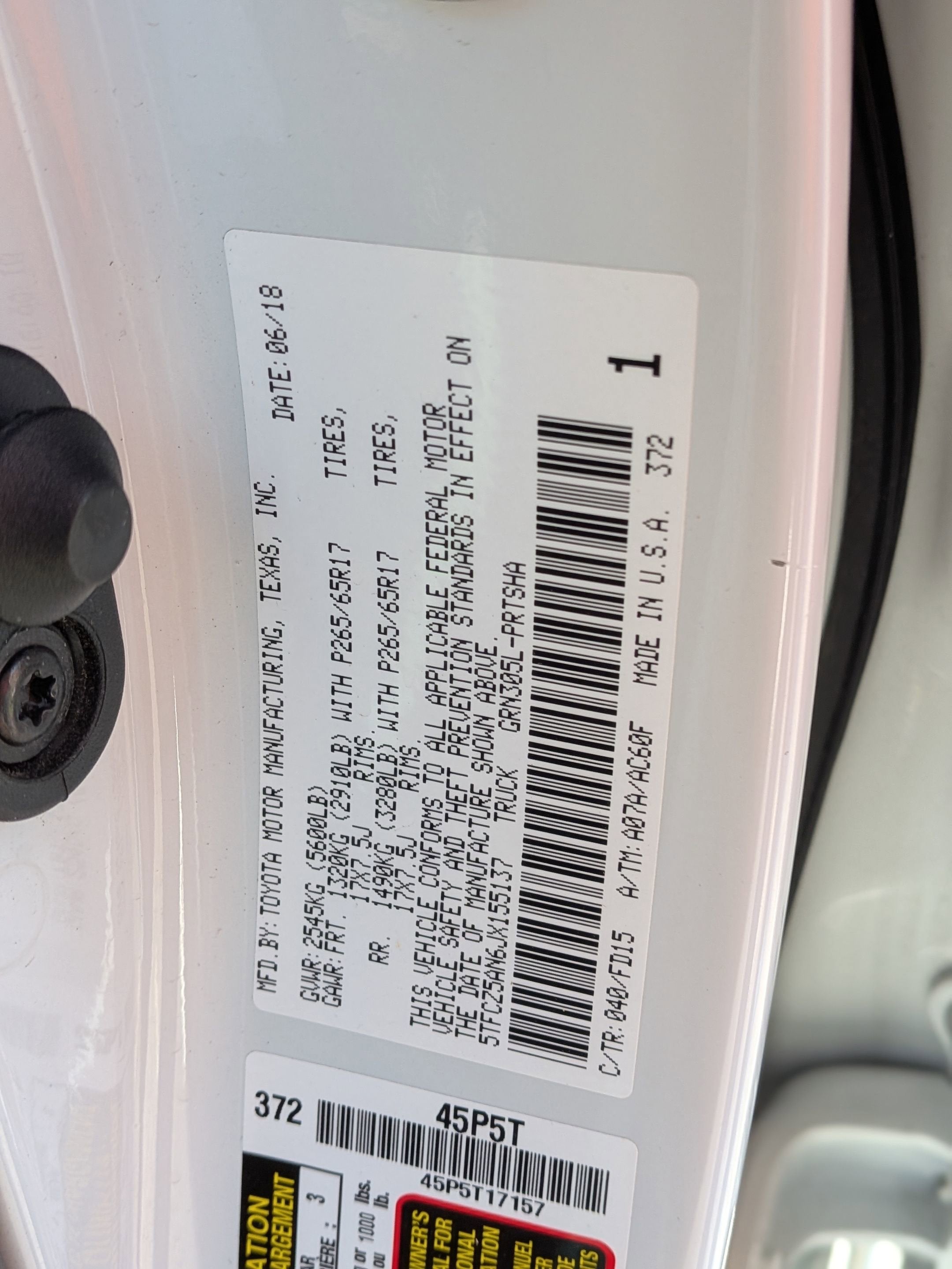 - Front Tire Size: P265/65SR17