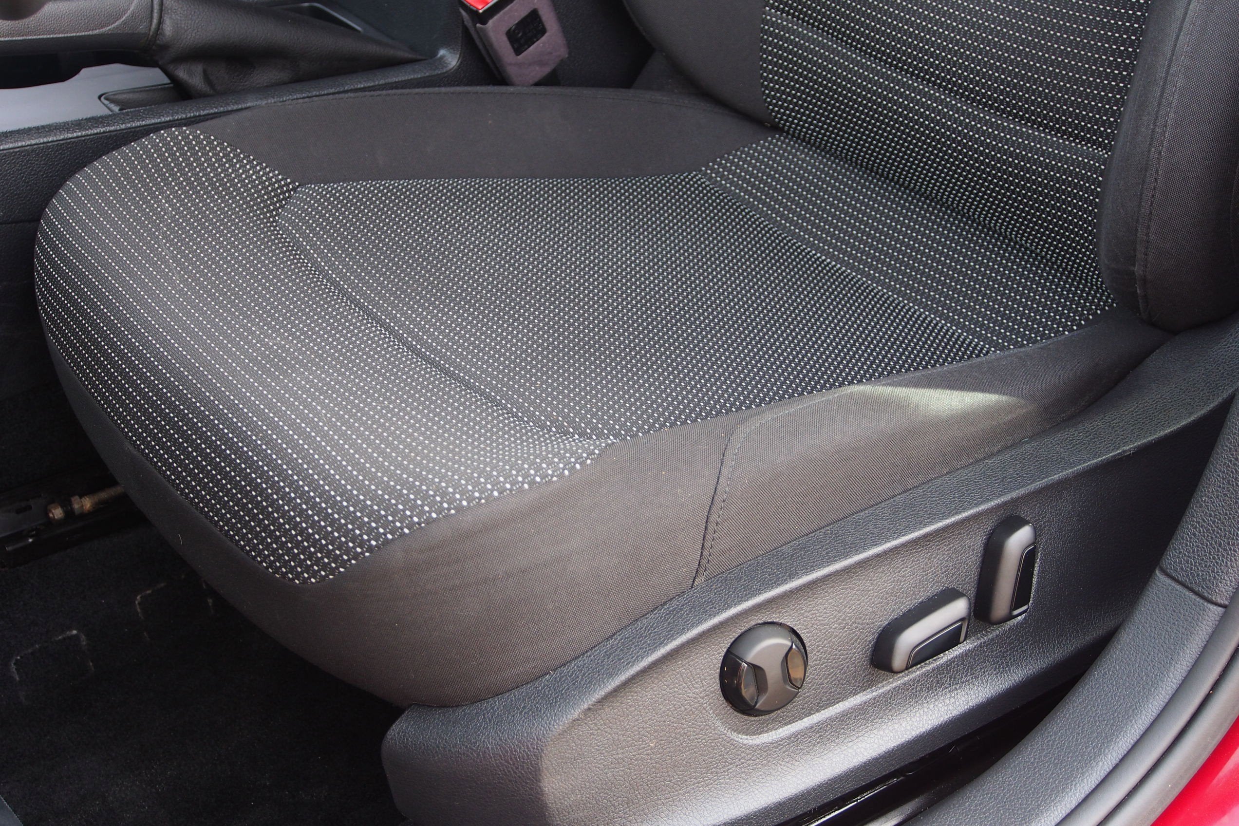 Cloth, 4-Wheel Disc Brakes, 6 Speakers, ABS brakes, Air Conditioning, Alloy wheels, Blind Spot Monitor w/Rear Traffic Alert, Brake assist, Bumpers: body-color, CD player, Delay-off headlights, Driver door bin, Driver vanity mirror, Dual front impact airbags, Dual front side impact airbags, Electronic Stability Control, Exterior Parking Camera Rear, Forward Collision Warning & AEB (Front Assist), Four wheel independent suspension, Front anti-roll bar, Front Bucket Seats, Front Center Armrest, Front reading lights, Fully automatic headlights, Illuminated entry, Low tire pressure warning, Occupant sensing airbag, Outside temperature display, Overhead airbag, Overhead console, Panic alarm, Passenger door bin, Passenger vanity mirror, Power door mirrors, Power driver seat, Power steering, Power windows, Radio data system, Rear anti-roll bar, Rear reading lights, Rear seat center armrest, Rear window defroster, Remote keyless entry, Speed control, Speed-sensing steering, Split folding rear seat, Steering wheel mounted audio controls, Tachometer, Telescoping steering wheel, Tilt steering wheel, Traction control, Trip computer, Turn signal indicator mirrors, Variably intermittent wipers, Cloth.