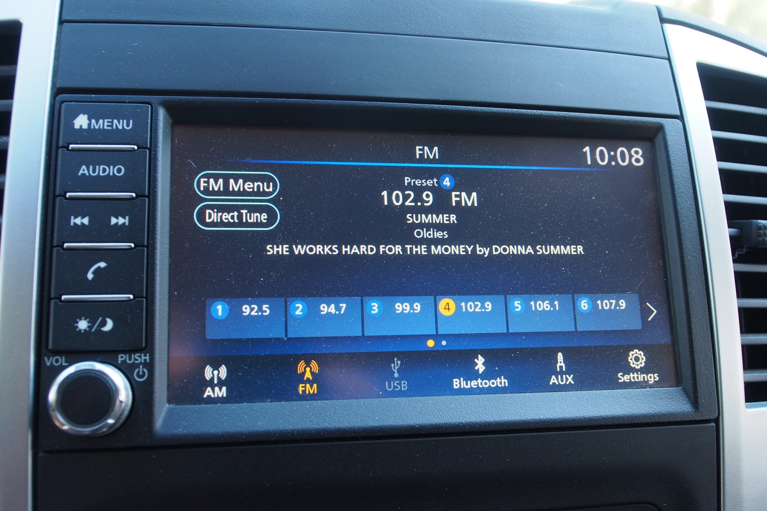 - Radio: AM/FM w/Auxiliary -inc: 7" color display audio, USB connection port for iPod Interface and other compatible devices, streaming audio via Bluetooth®, 6 speakers, Bluetooth® hands-free phone system, Siri Eyes Free and steering wheel audio controls