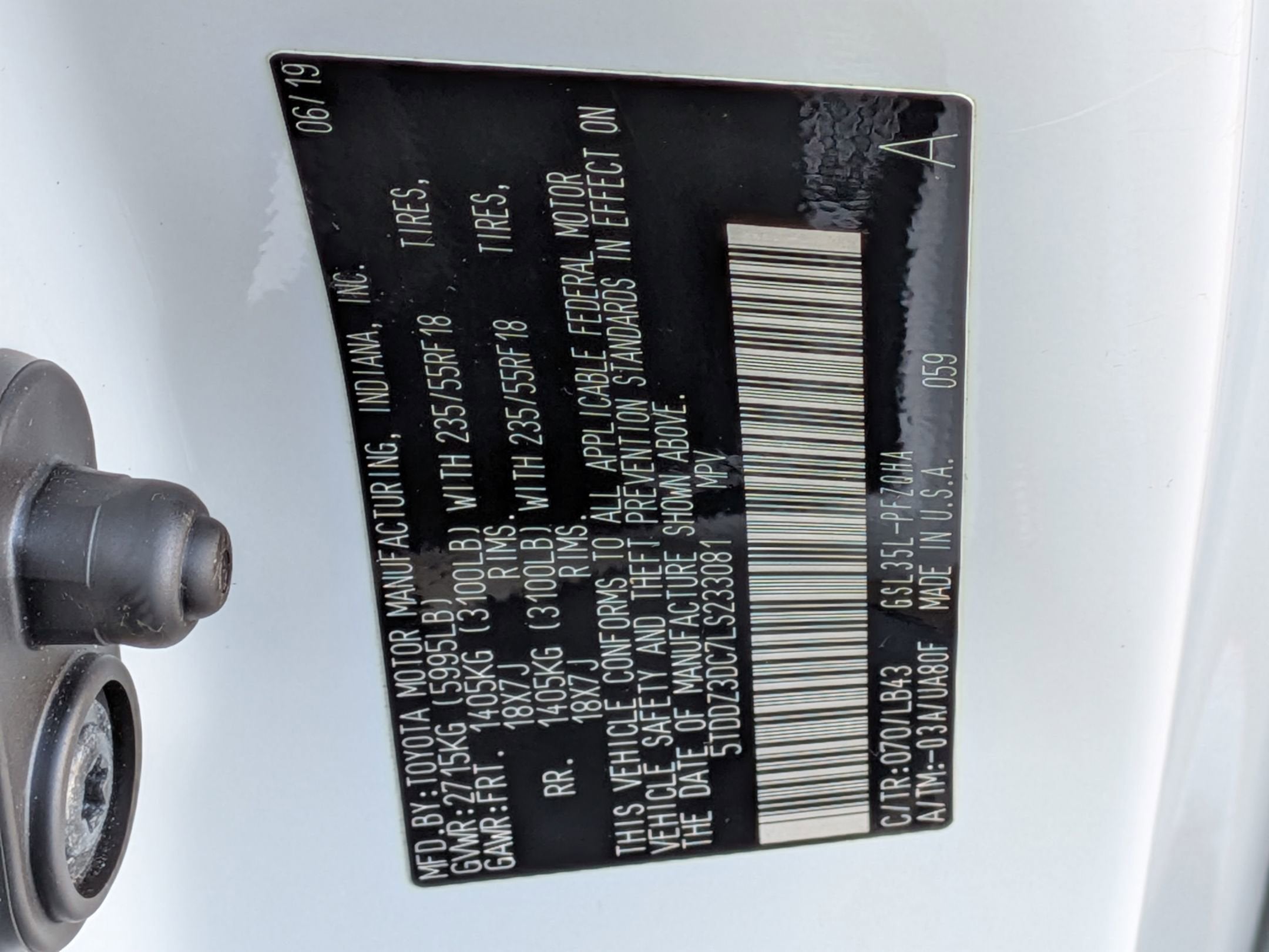 - Front Tire Size: P235/55TR18
