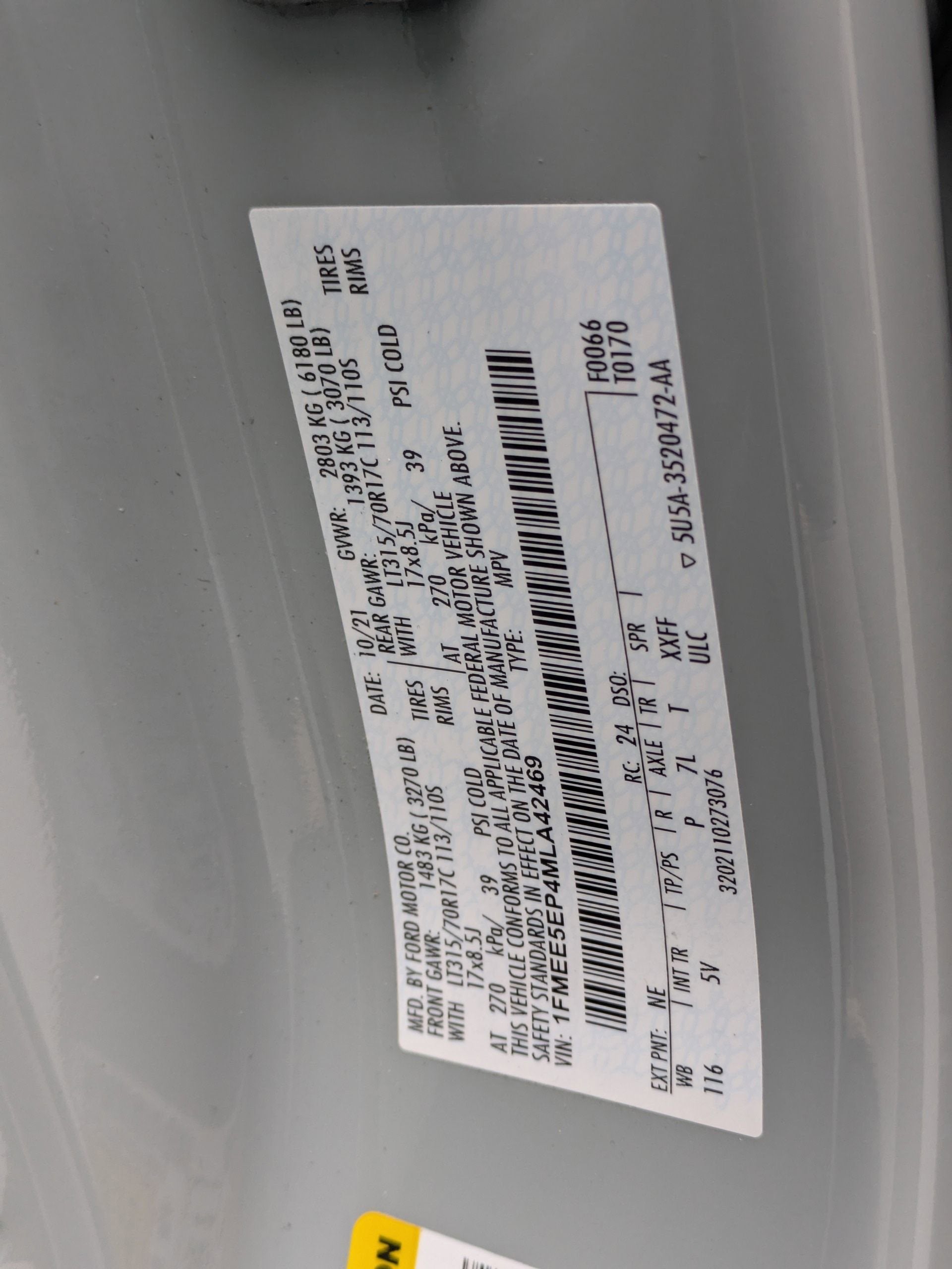 - Gross Axle Wt Rating - Front (lbs): 3270
