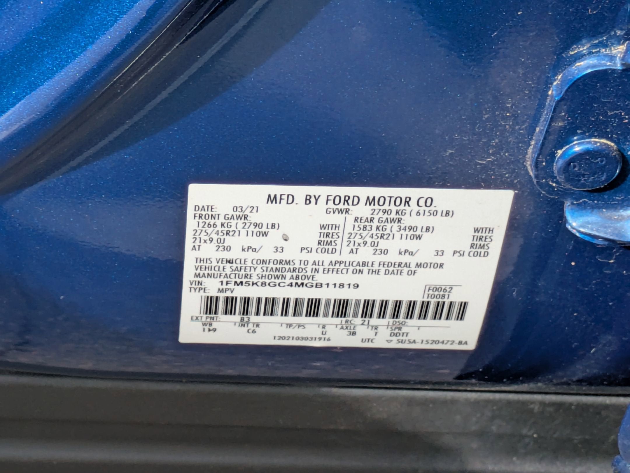 The driver-centric cabin is a high-tech masterpiece featuring the 401A Equipment Group and the Premium Technology Package. Highlights include a 10.1-inch LCD portrait touch screen, a 12-inch digital instrument cluster, and an immersive 14-speaker B&O Sound System. For ultimate comfort, it is equipped with Multicontour heated and ventilated front sport bucket seats and heated second-row seats. Safety and convenience are paramount with Ford Co-Pilot360 Assist+, featuring a 360-degree camera, Active Park Assist 2.0, and a Twin Panel Moonroof for an expansive view.