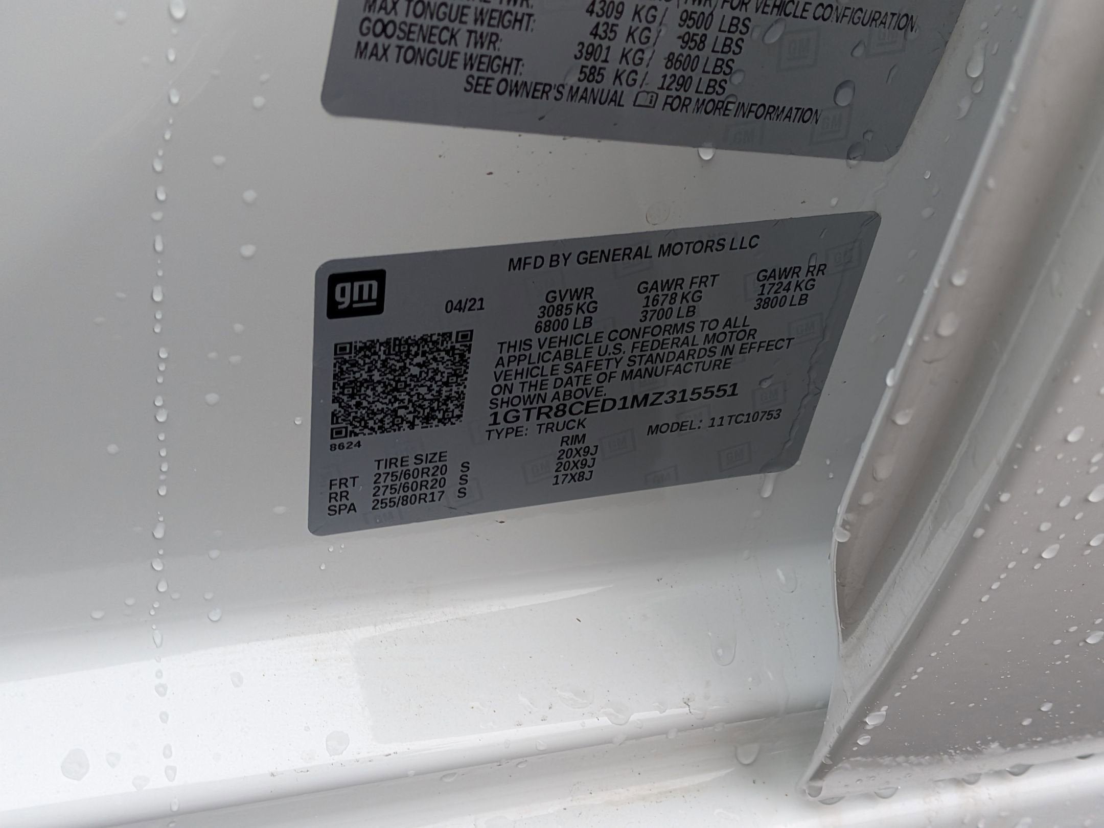 - Tires, 275/60R20 all-season, blackwall