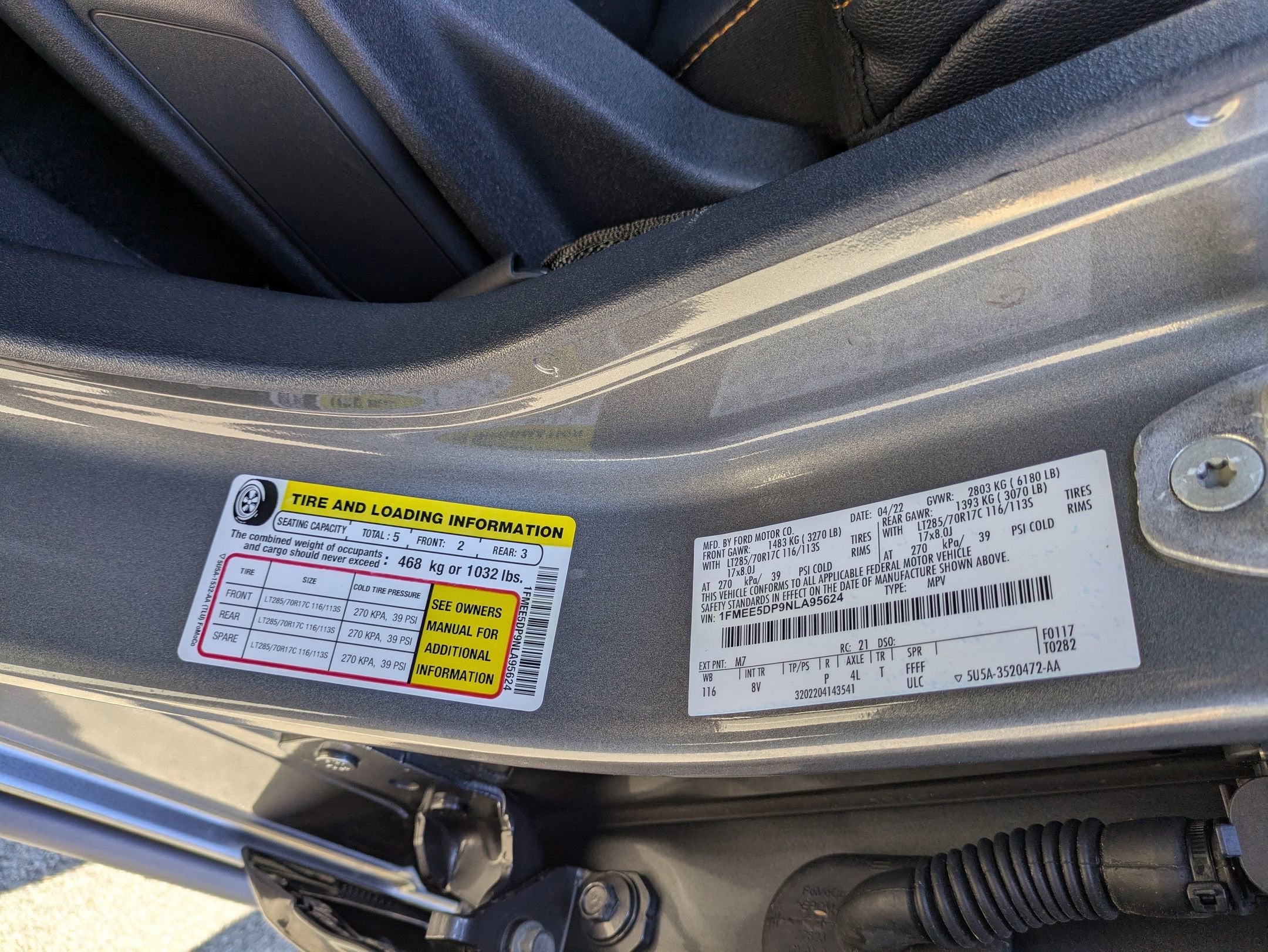 - Tires: LT285/70R17 A/T -inc: full size spare tire w/TPMS