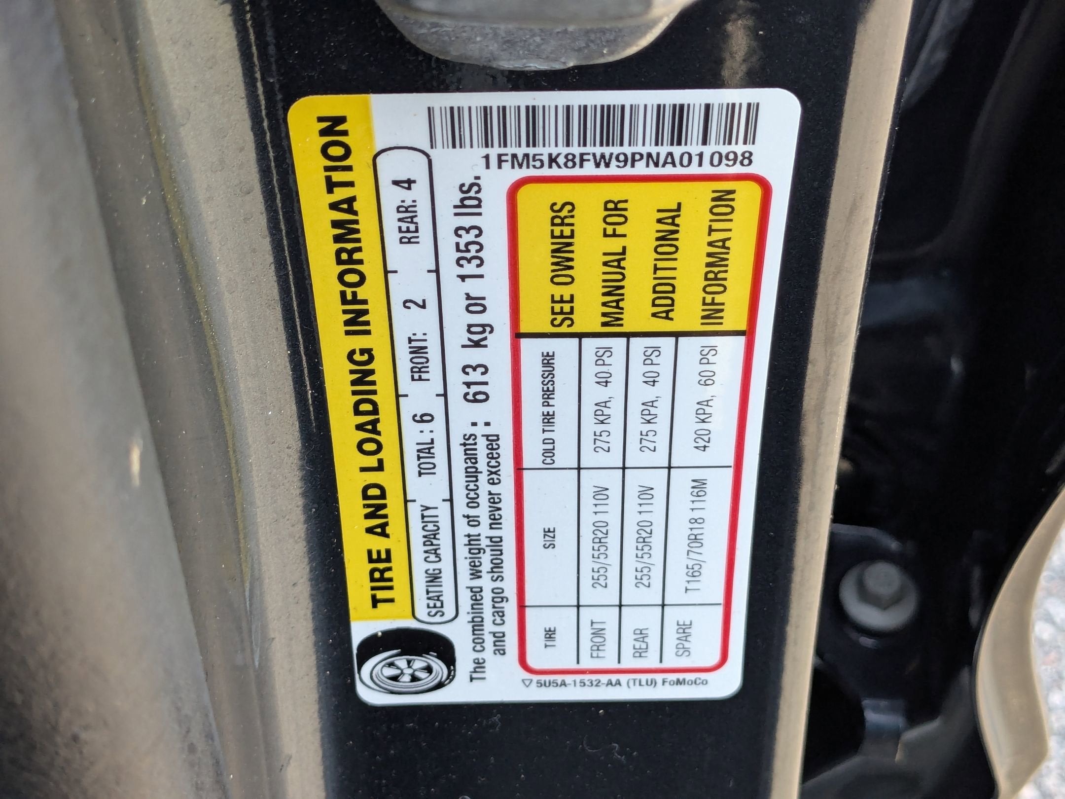 - Front Tire Size: P255/55VR20