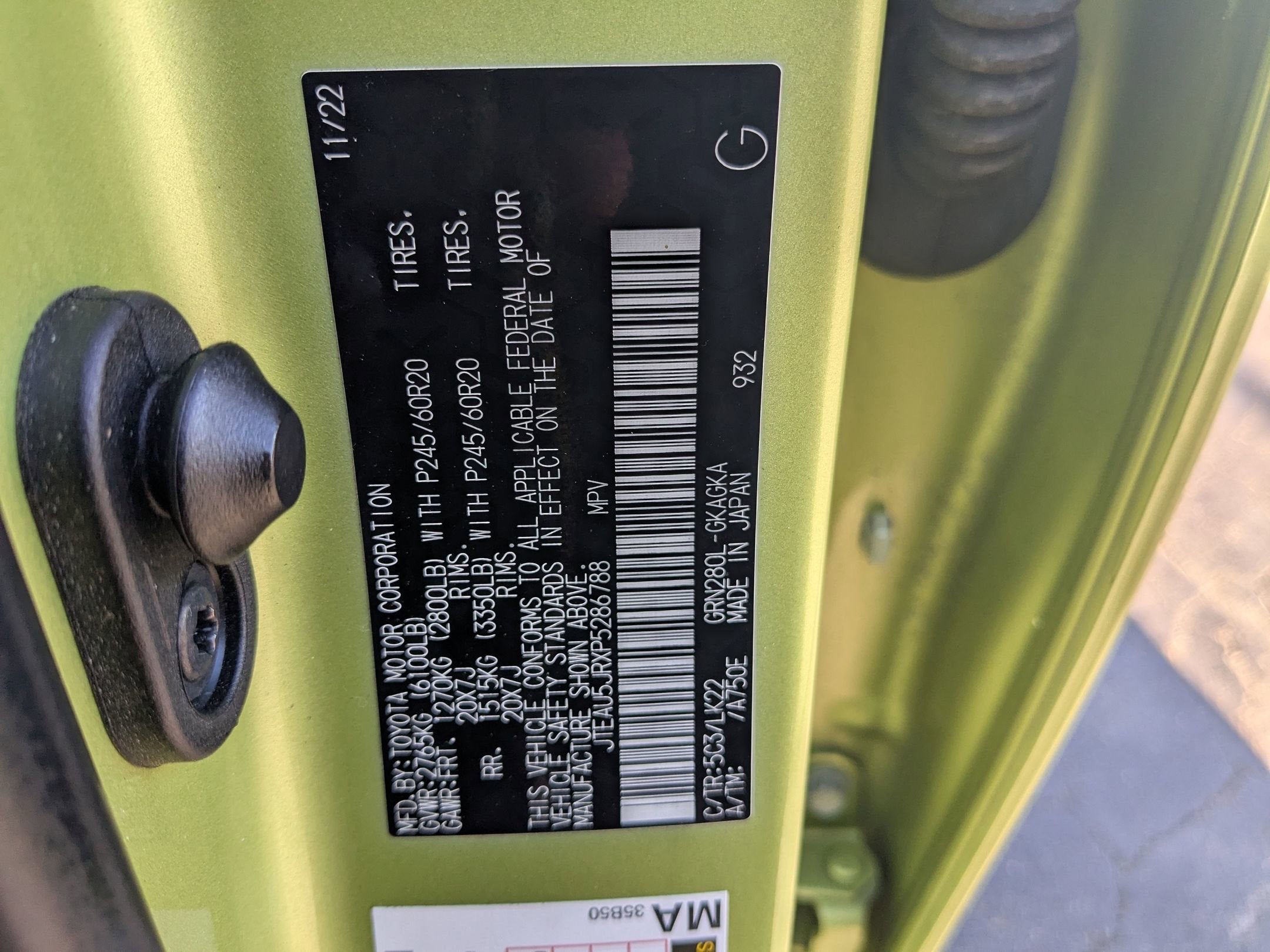 - Tires: P245/60R20 Mud & Snow