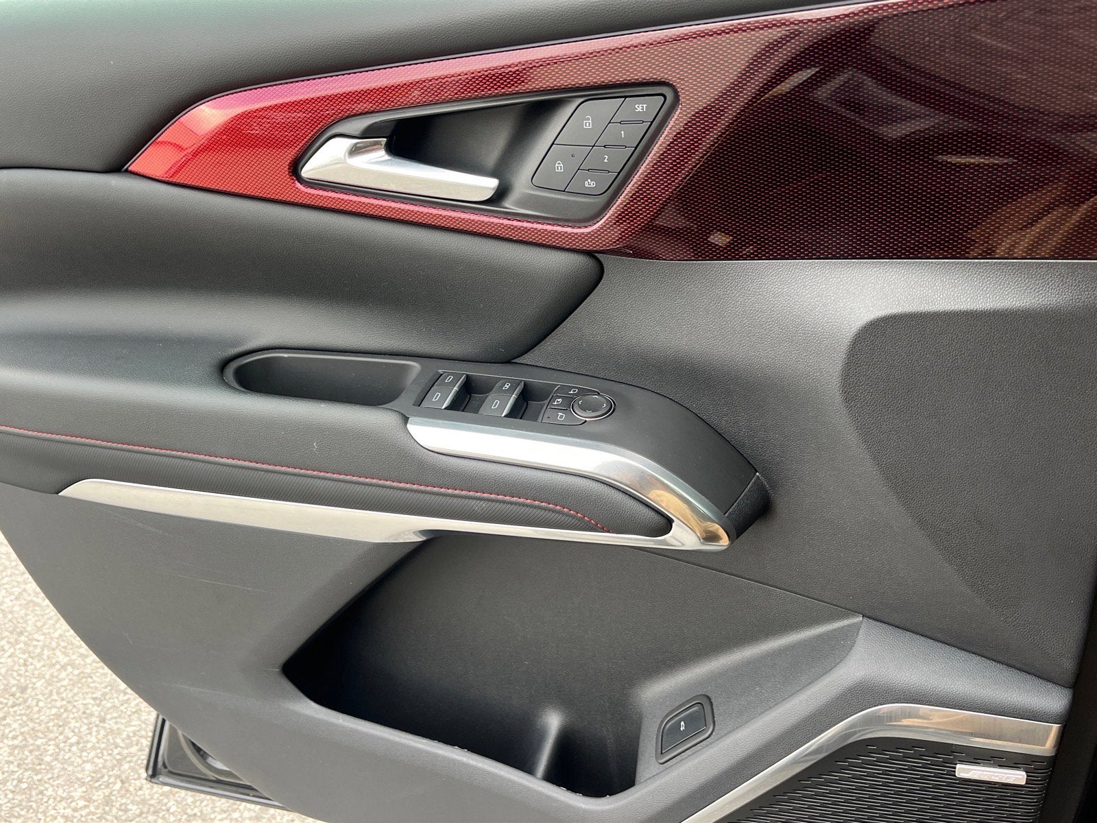 - JET BLACK WITH TORCH RED ACCENTS PERFORATED LEATHER-APPOINTED SEAT TRIM