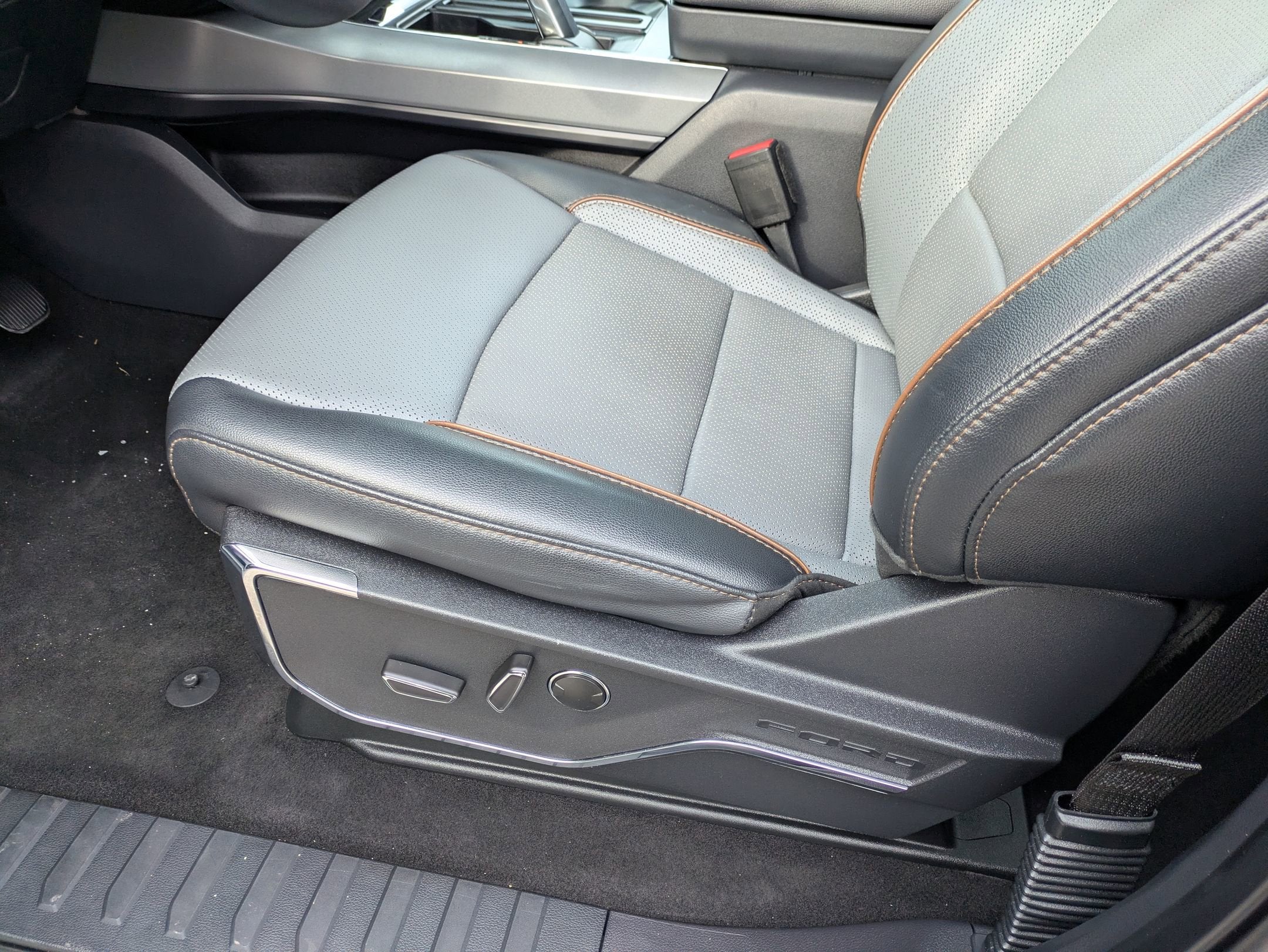 The Lariat interior is a high-tech sanctuary, anchored by the SYNC 4A system with a 15.5-inch touchscreen display and a 12-inch digital instrument cluster. Premium cabin amenities include heated and ventilated leather-trimmed 10-way power-adjustable front seats, ambient lighting, and an Interior Work Surface for on-the-go productivity. For a premium audio experience, it features an 8-speaker B&O sound system.