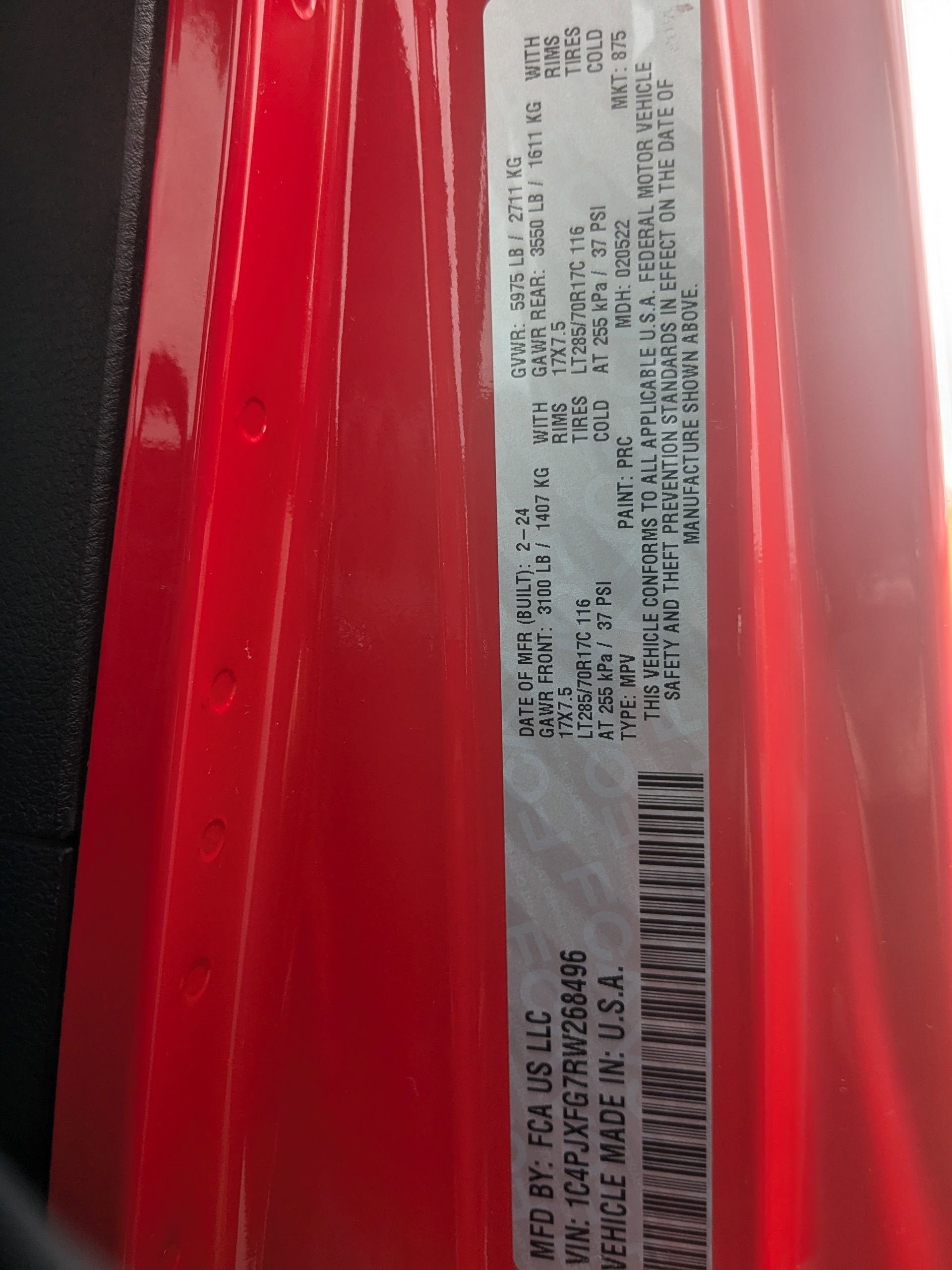 - Gross Vehicle Weight Rating Cap (lbs): 5975