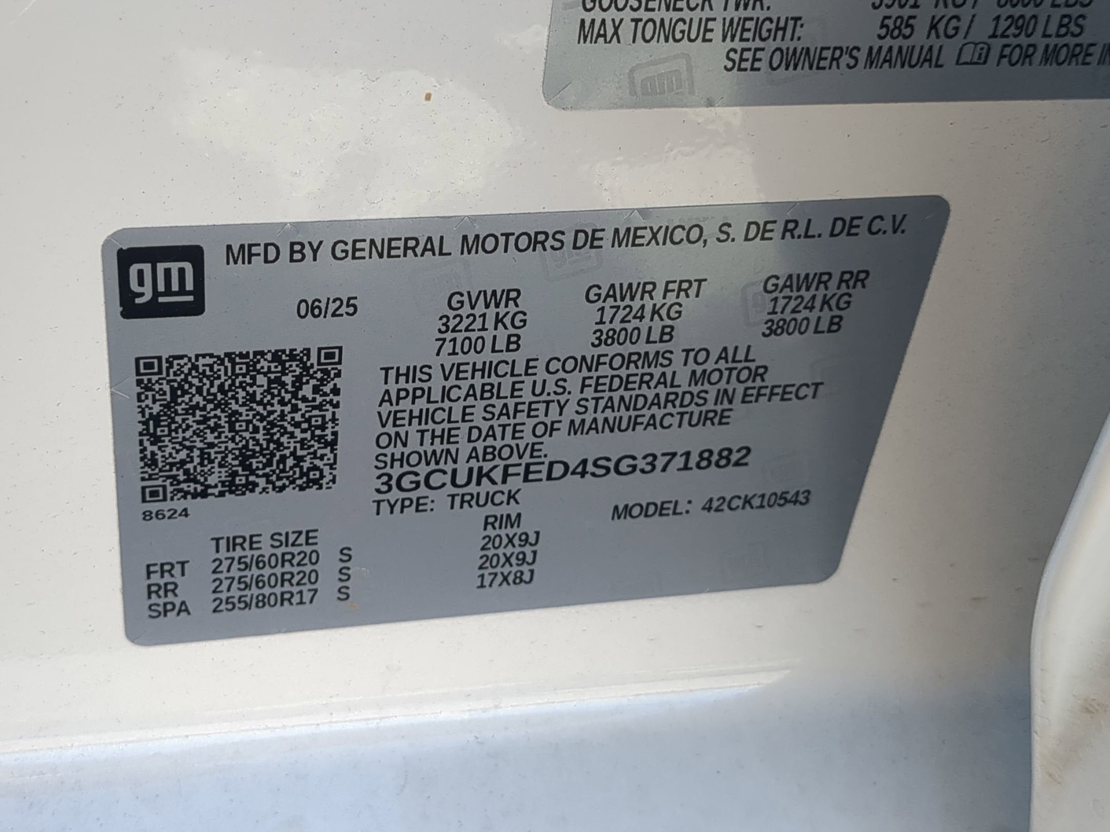 - Front Tire Size: 275/60R20SL