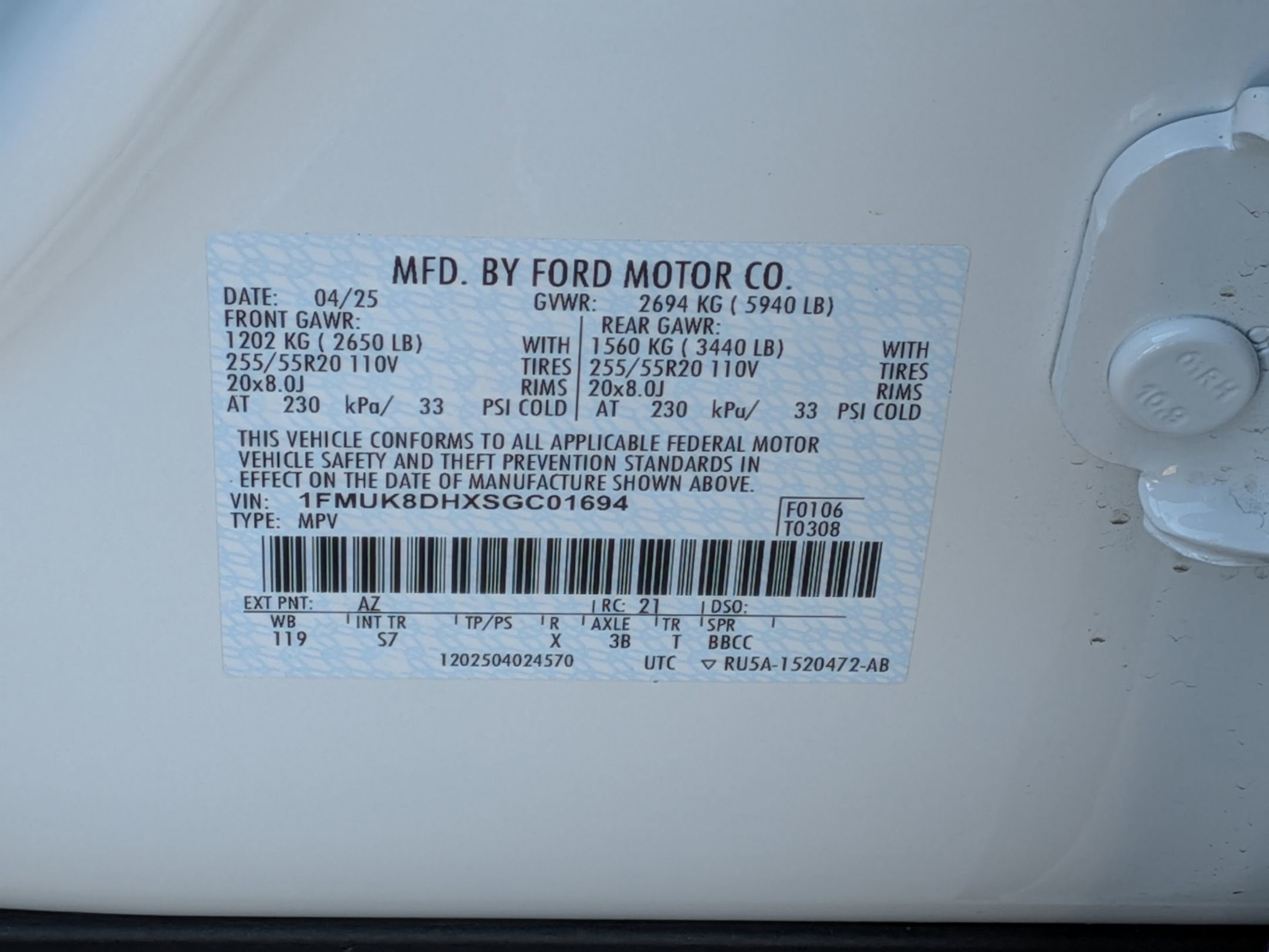 - Tires: P255/65R18 AS BSW